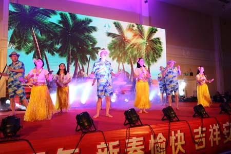 今年的新春團拜會打破傳統(tǒng),模式創(chuàng)新,整個流程采用LED大屏幕的全新形式,把新春大拜年、工作總結、頒獎典禮、文藝表演、幸運抽獎貫穿其中,別開生面,呈現(xiàn)出全新模式的視聽享受。本次團拜會由公司黨、政、工合力籌劃,提前一個月組織,特別是各部門籌備的文藝節(jié)目,為干部員工們獻上一場精彩紛呈的年會盛宴。佳樂公司喜慶開場舞蹈,南國風情的《草裙舞》、民樂合奏、薩克斯組合、現(xiàn)代拉丁舞等精彩節(jié)目以及激動人心的幸運大抽獎,讓團拜會氣氛熱烈,高潮不斷。2015年新春團拜會,讓人意猶未盡,更是盛況空前,引用時下最時尚的用語,那就是“高、大、上”,干部員工紛紛點贊,堪稱美大康版“春晚”。