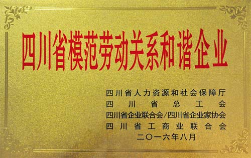 由四川省人力資源和社會保障廳、四川省總工會、四川省企業(yè)家聯(lián)合會/企業(yè)家協(xié)會、四川省工商業(yè)聯(lián)合會四部門以川人社(2016)32號文,授予我司等為省級勞動關系和諧企業(yè)稱號。