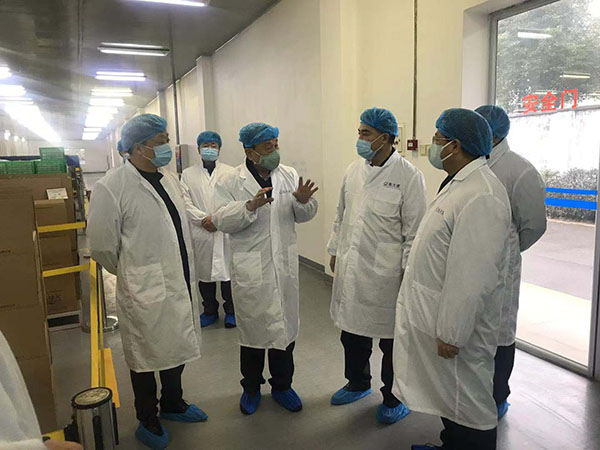 (2月5日德陽(yáng)市市長(zhǎng)何禮一行在什邡市王洪市長(zhǎng)的陪同下到我公司監(jiān)察復(fù)工后工廠生產(chǎn)和防疫工作情況)