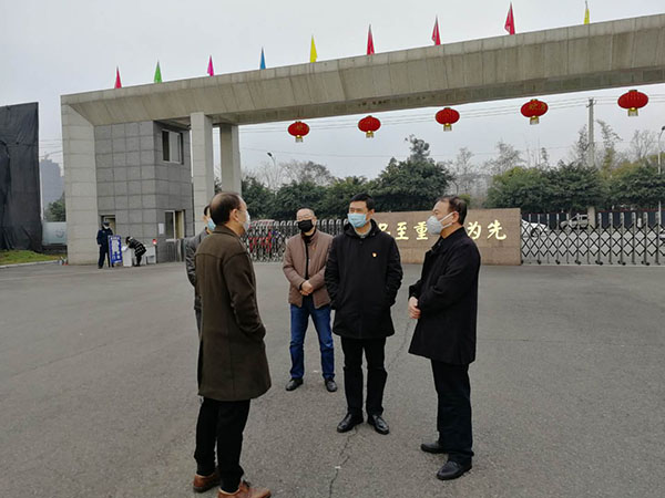 (2月10日,什邡市委組織部部長(zhǎng)彭良深入公司一線,檢查公司的防疫情況,并送來(lái)慰問(wèn)品。)