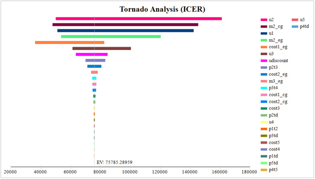 單因素敏感性分析結(jié)果顯示各參數(shù)在一定范圍內(nèi)變化后,地黃葉總苷膠囊與厄貝沙坦片聯(lián)用方案仍具有經(jīng)濟性。
