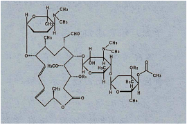 雙乙酰螺旋霉素Ⅲ:R1=COCH2CH3 R2=COCH3