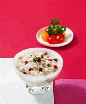 茉莉花含有多種有機物和維生素,以及糖和淀粉等有益于人體的營養(yǎng)元素,是十分理想的美容佳品。茉莉花采集后經脫水處理制成干茉莉花,既可泡茶,又可熬粥。用新鮮粳米100克煮粥,待粥將好時,放入干茉莉花3~5克,再煮5~10分鐘即成。茉莉花粥味甜清香,十分爽口,茉莉花的香氣可“上透頭頂,下去小腹”,解除胸中一切陳腐之氣,不但令人神清氣爽,還可調理干燥皮膚,具有美肌艷容、健身提神、防老抗衰的功效。
